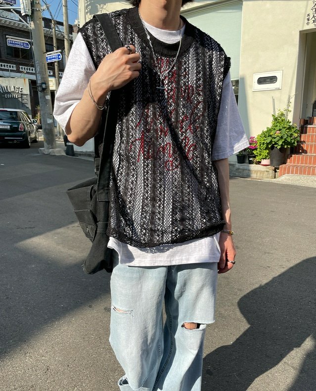 オーバーサイズシルエットの洋服ニットベスト 上質感漂うシンプルデザイン
