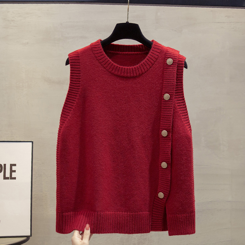 縦リブ編みの洋服ニットベスト 上質感あふれるボタンデザイン