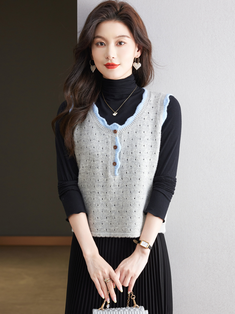 エレガントなフリルデザイン洋服ニットベスト 上品な装いを演出