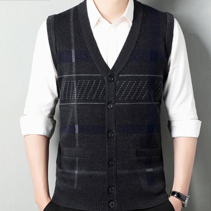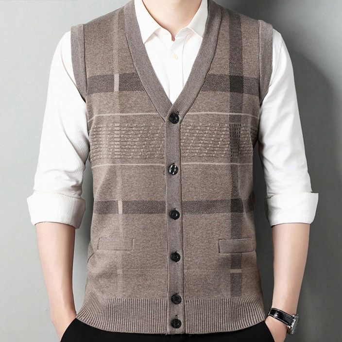 40代の深みある魅力を引き出すVネックニットベスト
