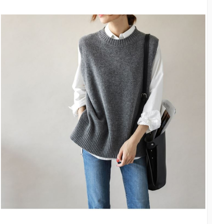洗練された上質なグレーのニットベストです。