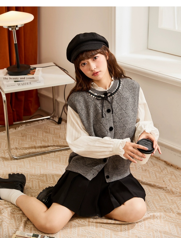 シャツやブラウスと重ね着することで奥行きのあるおしゃれなコーディネートが完成