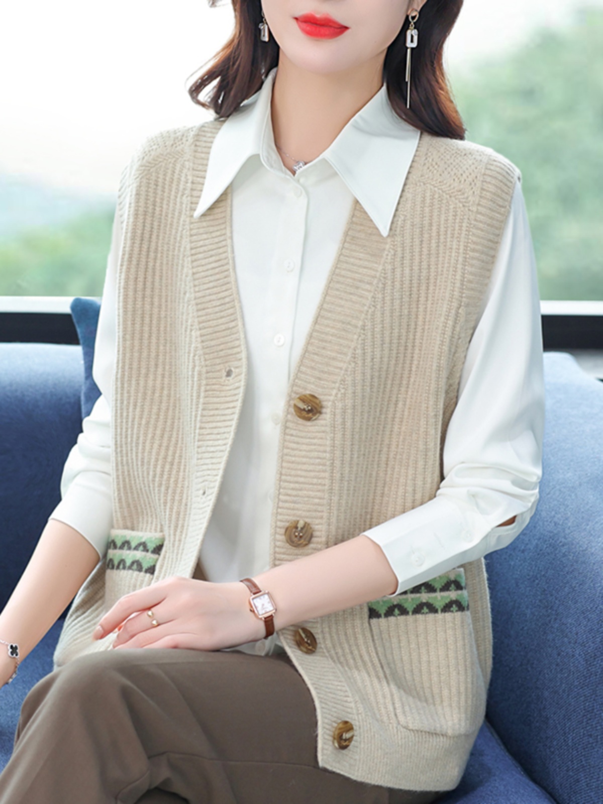 上質な素材感と洗練されたシルエットが、日常の装いに品格を添えるニットベストです。