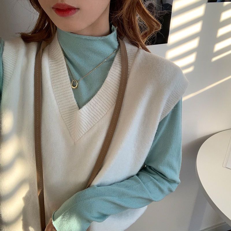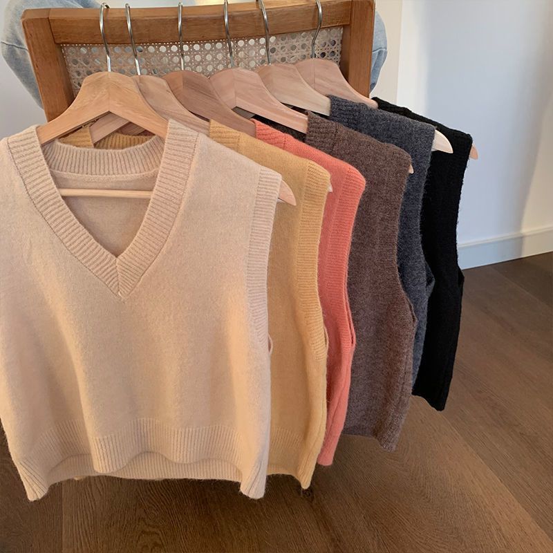 肩が落ちたゆったりシルエットで体型を選ばず、重ね着にも最適なニットベスト。