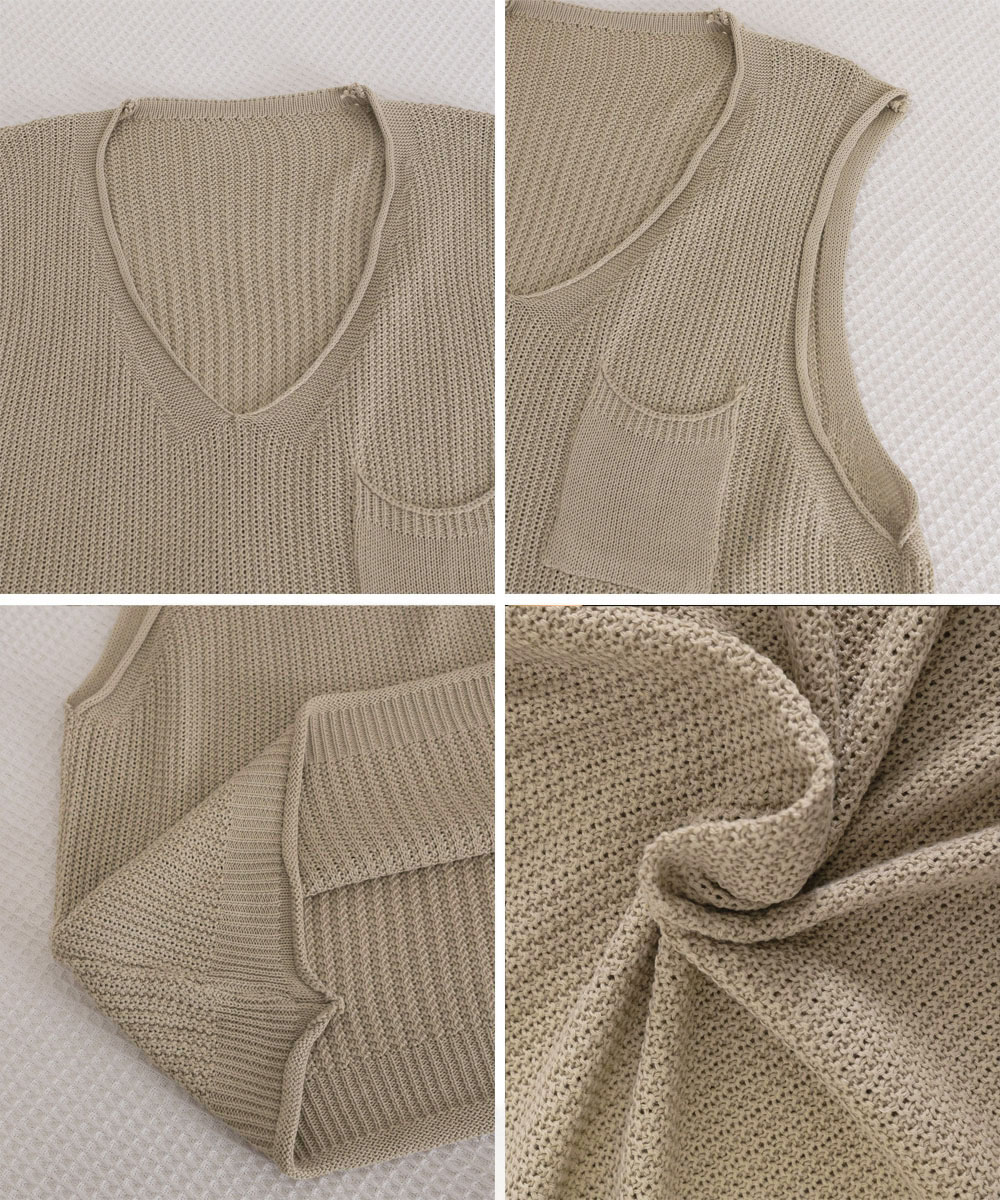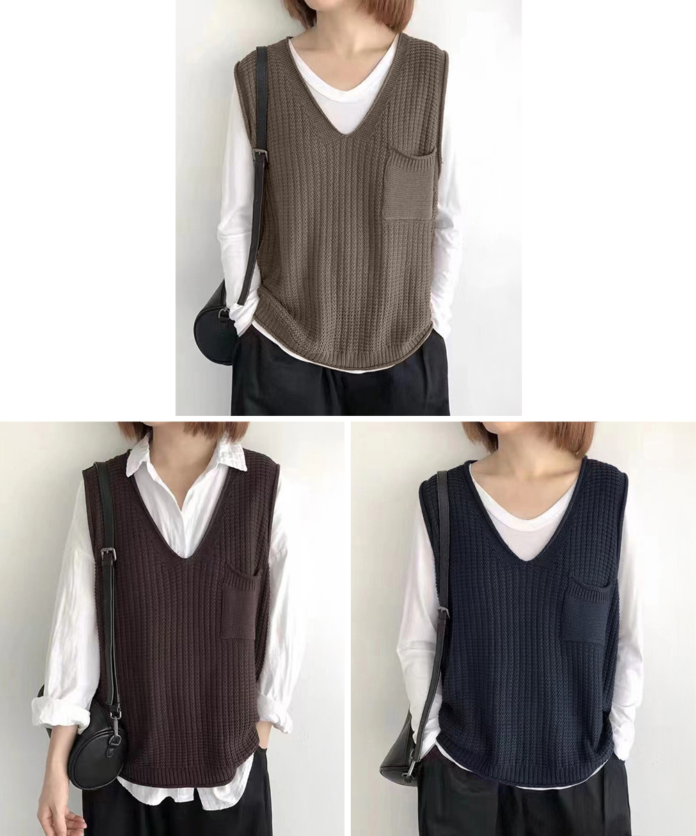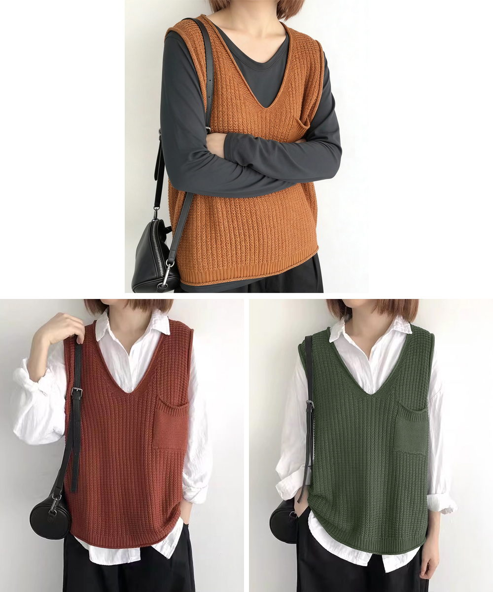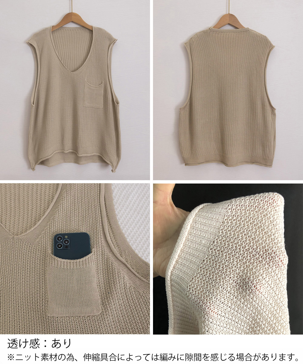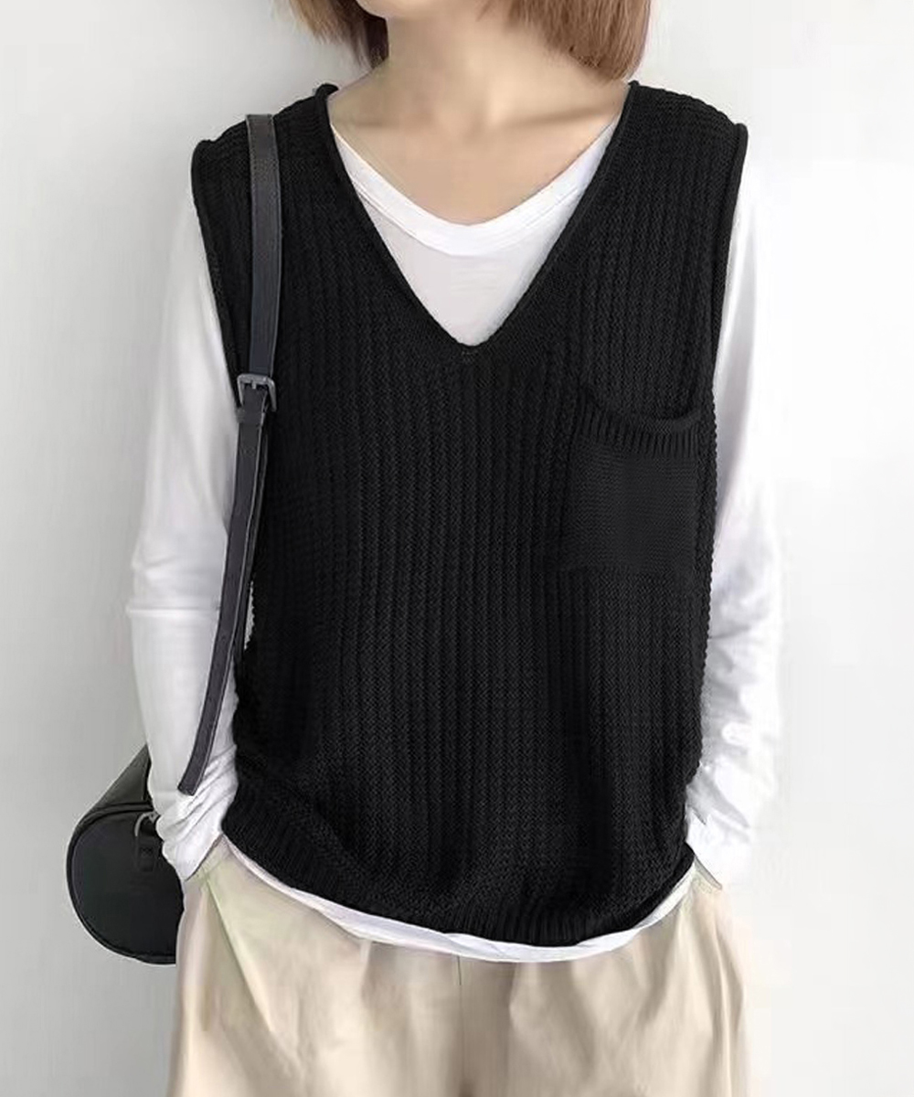 重ね着コーデにぴったりなベージュカラーのニットベスト。