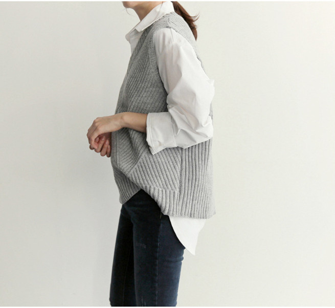 ゆったりとした着心地が魅力の黒ニットベストです。
